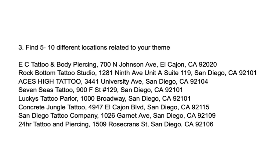 For this project, I was tasked with finding something I am interested in and passionate about. I then did research on the topic that I chose, found locations related to it and information about the locations, and looked at reviews. All the research was then compiled into an informational brochure, as well as an app that was designed to be an interactive version of the brochure.